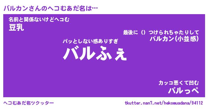 | 意味不明あだ名 | 『ペロリンバルカン』『永久保存バルカン』 |