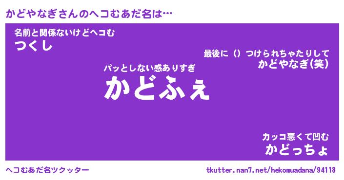 | 2回繰り返すあだ名 | 『かどかど』『かかどど』『ぬぷぬぷ』 |