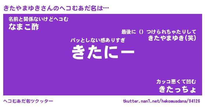 | ポケモン風あだ名 | 『キタチュウ』『キタヤダネ』 |