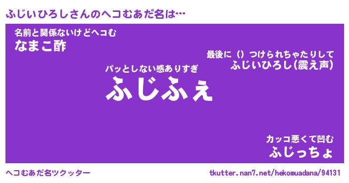 | ヒーロー風カッコイイあだ名 | 『スーパーフジイヒロシ』『魔戒騎士フジ』 |