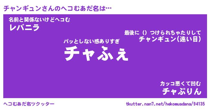| 欧米人風あだ名 | 『マイケルチャンギュン』 |