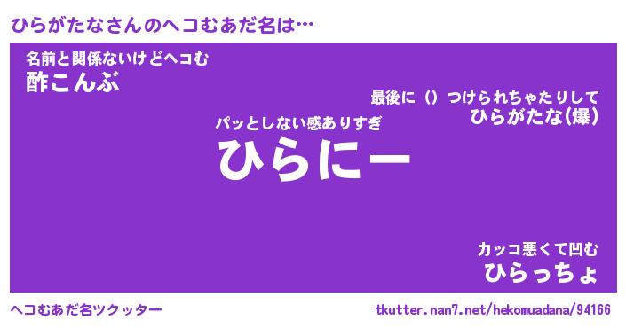 | 恥ずかしいあだ名 | 『プリティーひらがたな』『ひらっちょ』 |
