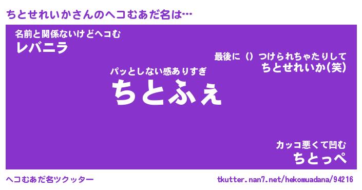 | 胡散臭い通販商品みたいなあだ名 | 『必ず成功するブレスレット…その名も「ちとせれいか」』 |