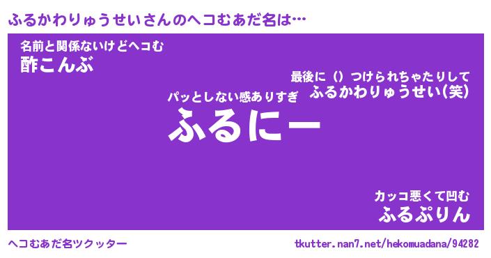 | ヒーロー風カッコイイあだ名 | 『スーパーフルカワリュウセイ』 |