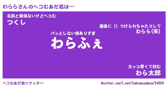 | ヒーロー風カッコイイあだ名 | 『スーパーワララ』『ウルトラわららマン』 |