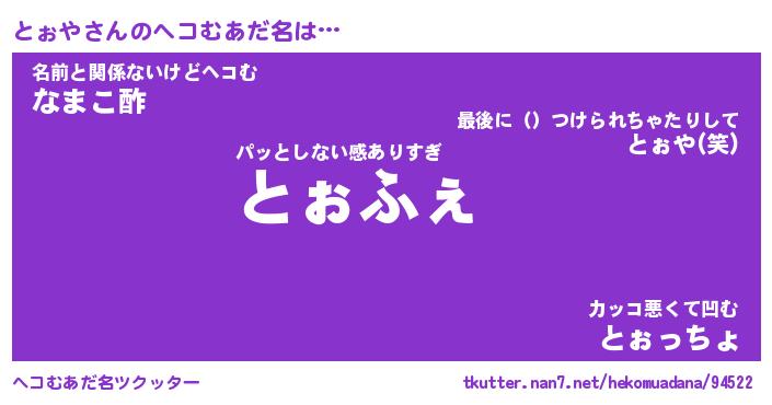 | ポケモン風あだ名 | 『トォチュウ』『トォヤダネ』 |