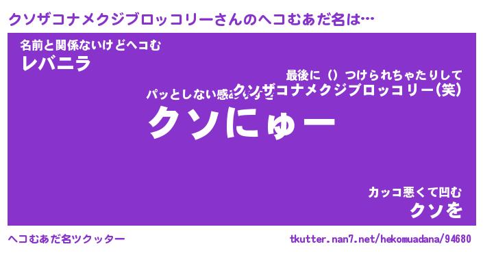 | ヒーロー風カッコイイあだ名 | 『スーパークソザコナメクジブロッコリー』 |