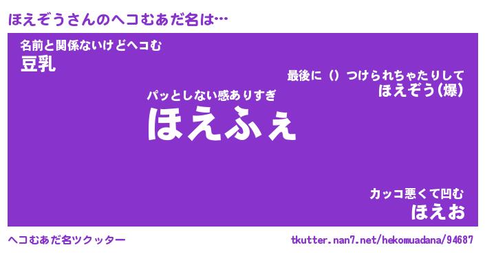 | 男性向けラノベタイトル風あだ名 | 『ほえぞうの憂鬱』 |