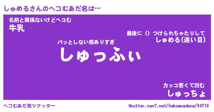 | 意味不明あだ名 | 『ペロリンしゅめる』『永久保存しゅめる』 |