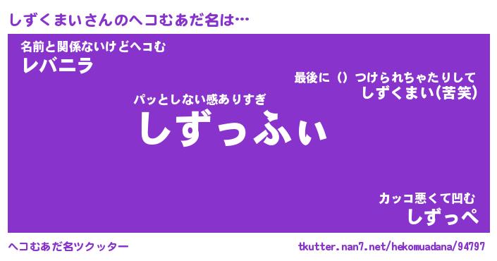 | ポケモン風あだ名 | 『シズチュウ』『シズクダネ』 |