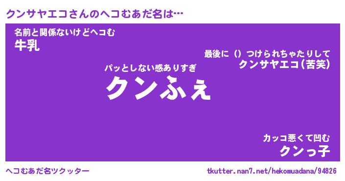 | ツイッター | クンサヤエコさんのツイッターID『dendenmushi_star』 |