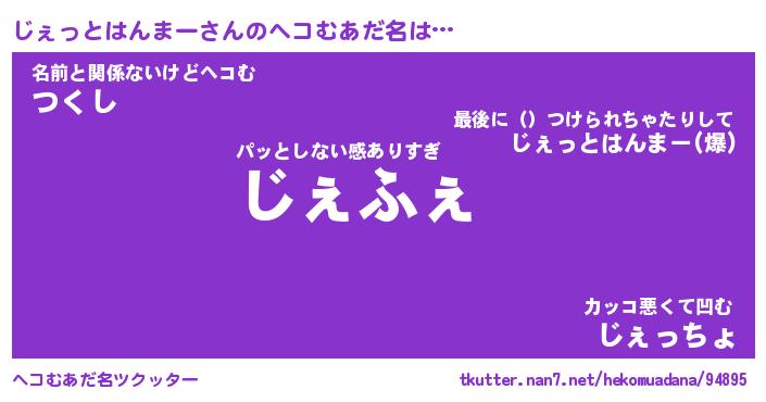 | 自動車の名前っぽいあだ名 | 『ジェティマ』『ジクア』『デミジ』 |