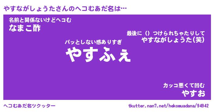 | ヒーロー風カッコイイあだ名 | 『スーパーヤスナガショウタ』 |