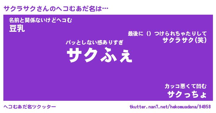 | ヒーロー風カッコイイあだ名 | 『スーパーサクラサク』『銀牙騎士サク』 |