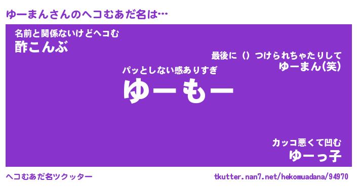| 意味不明あだ名 | 『ペロリンゆーまん』『永久保存ゆーまん』 |