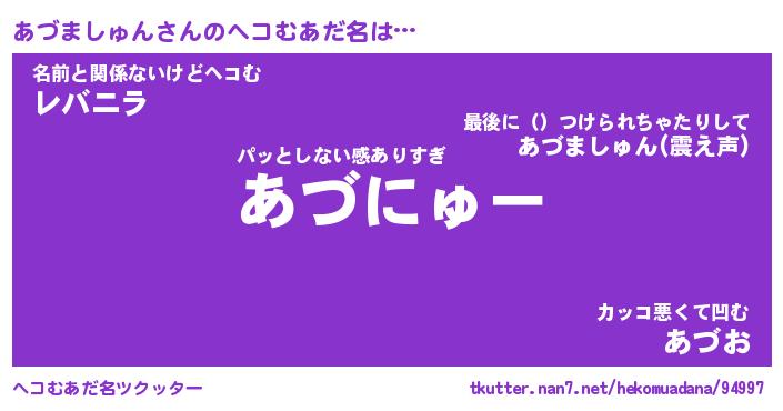 | 男性向けラノベタイトル風あだ名 | 『あづましゅんの憂鬱』 |
