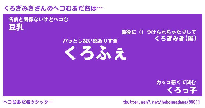 | 2回繰り返すあだ名 | 『くろくろ』『くくろろ』 |