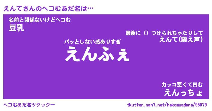 | 意味不明あだ名 | 『ペロリンえんて』『えんてフォーエバー』 |