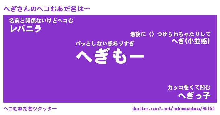 | ポケモン風あだ名 | 『ヘギチュウ』『ヘギダネ』『ヒヘギ』 |