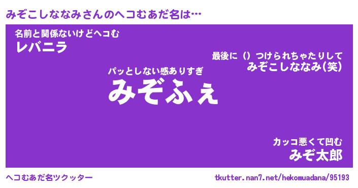 | 欧米人風あだ名 | 『マイケルみぞこしななみ』 |