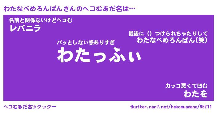 | 意味不明あだ名 | 『ペロリンわたなべめろんぱん』 |