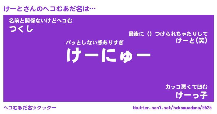 | 意味不明あだ名 | 『ペロリンけーと』『けーとフォーエバー』 |