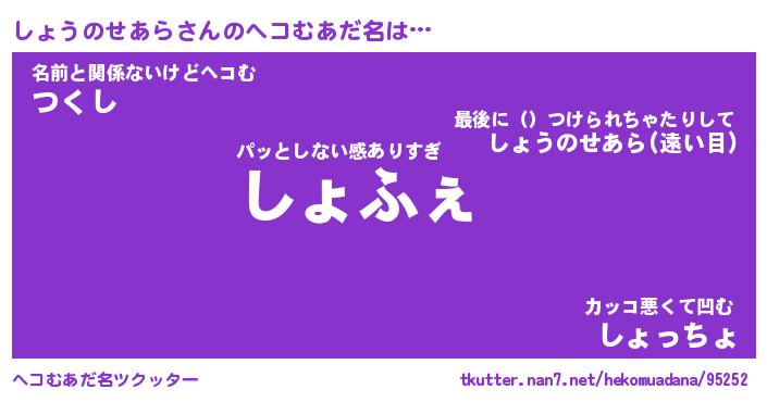 | 欧米人風あだ名 | 『マイケルしょうのせあら』 |