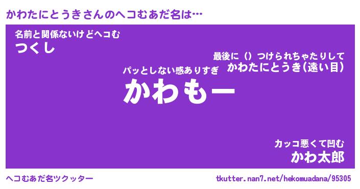 | 意味不明あだ名 | 『ペロリンかわたにとうき』 |