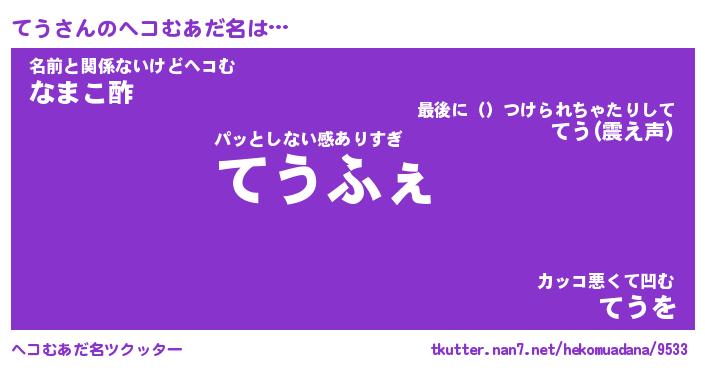| ポケモン風あだ名 | 『テウチュウ』『テウダネ』『ヒテウ』 |