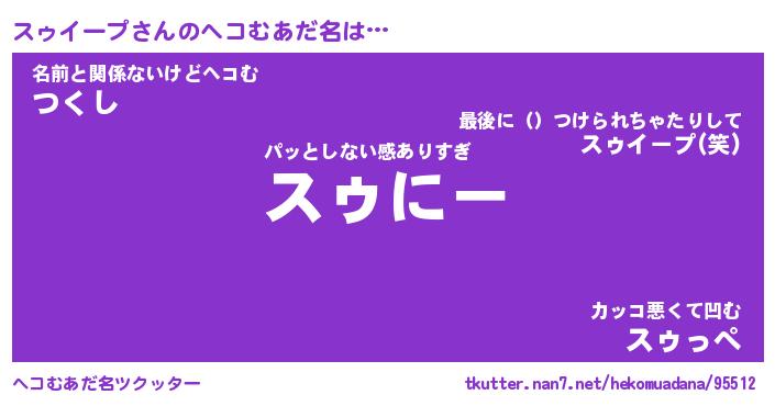 | ファンタジー風あだ名 | 『スゥフェル』『エターナルスゥイープー』 |
