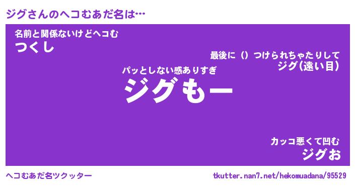 | ポケモン風あだ名 | 『ジグチュウ』『ジグダネ』『ヒジグ』 |