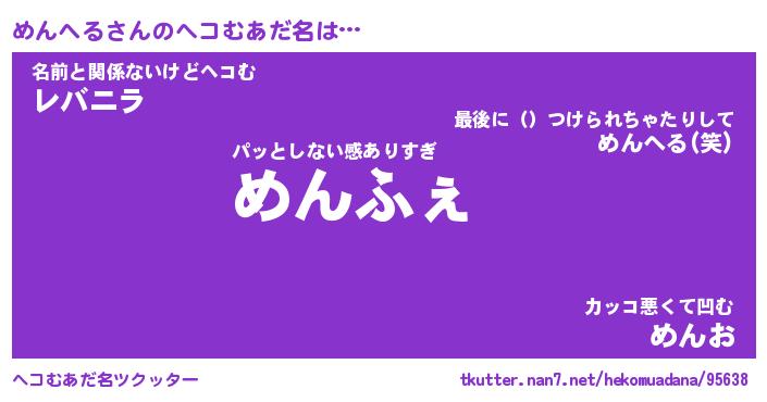 | 意味不明あだ名 | 『ペロリンめんへる』『永久保存めんへる』 |
