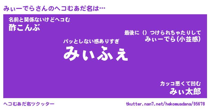 | 2回繰り返すあだ名 | 『みぃみぃ』『みみぃぃ』『ぬぷぬぷ』 |