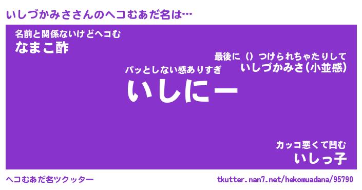 | ヒーロー風カッコイイあだ名 | 『スーパーイシヅカミサ』『幻影騎士イシ』 |
