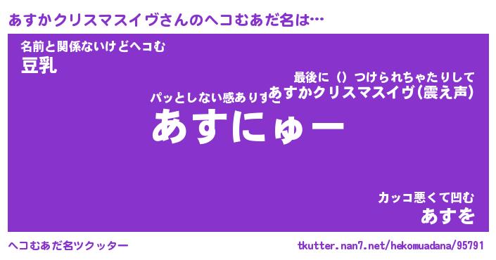 | 意味不明あだ名 | 『ペロリンあすかクリスマスイヴ』 |