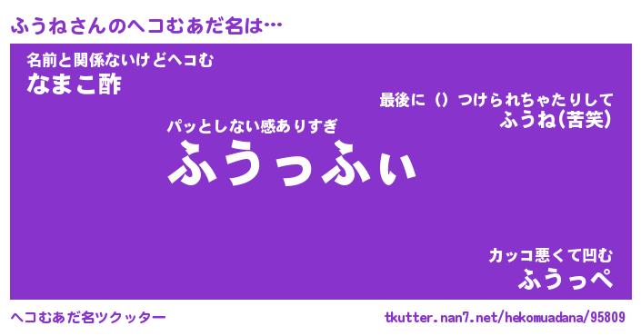 | ファンタジー風あだ名 | 『フウフェル』『エターナルフウネー』 |