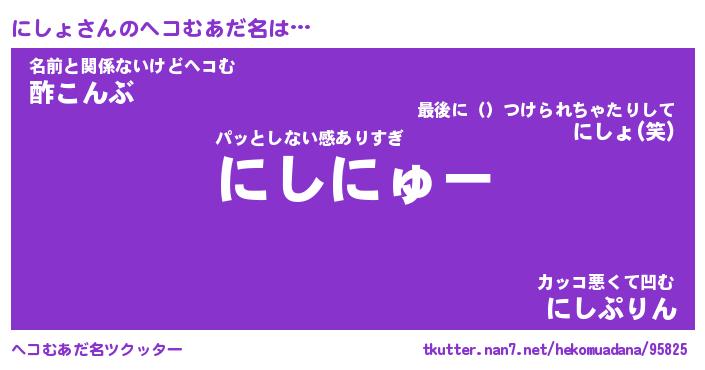 | ポケモン風あだ名 | 『ニシチュウ』『ニショダネ』 |