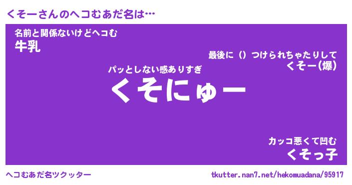 | 男性向けラノベタイトル風あだ名 | 『くそーの憂鬱』 |