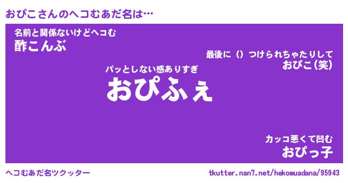 | ヒーロー風カッコイイあだ名 | 『スーパーオピコ』『ウルトラおぴこマン』 |