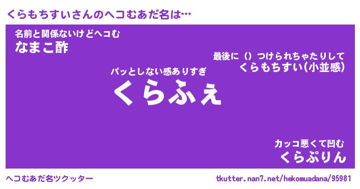 | 男性向けラノベタイトル風あだ名 | 『くらもちすいの憂鬱』 |