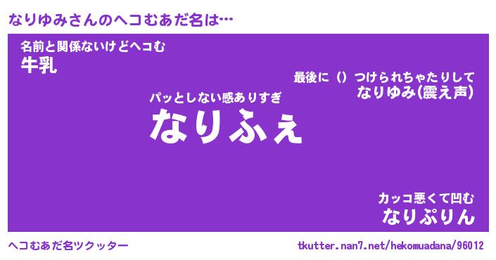 | ヒーロー風カッコイイあだ名 | 『スーパーナリユミ』『暗黒騎士ナリ』 |