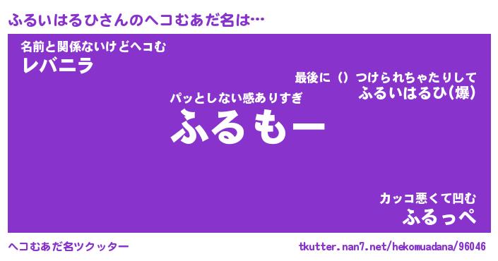 | ヒーロー風カッコイイあだ名 | 『スーパーフルイハルヒ』『魔戒騎士フル』 |