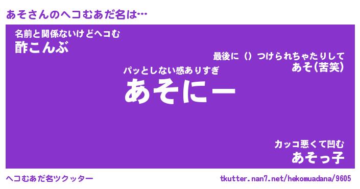 | 意味不明あだ名 | 『ペロリンあそ』『あそフォーエバー』 |