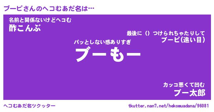 | ヒーロー風カッコイイあだ名 | 『スーパーブーピ』『ウルトラブーピマン』 |