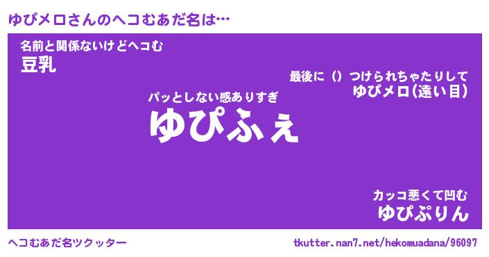 | ファンタジー風あだ名 | 『ユピフェル』『エターナルユピメロー』 |