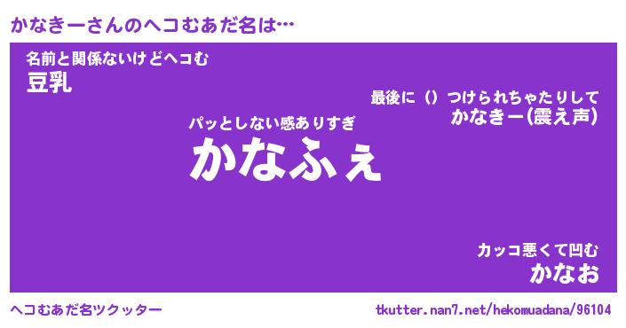 | 意味不明あだ名 | 『ペロリンかなきー』『永久保存かなきー』 |
