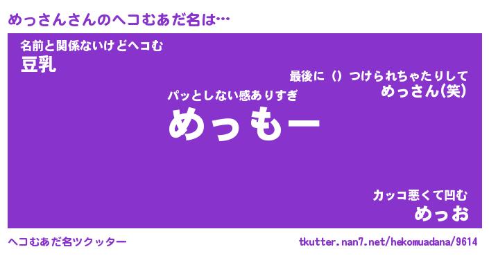 | 意味不明あだ名 | 『ペロリンめっさん』『永久保存めっさん』 |