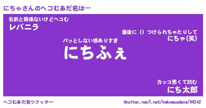 | 男性向けラノベタイトル風あだ名 | 『にちゃの憂鬱』 |