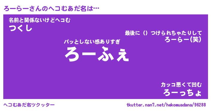 | 意味不明あだ名 | 『ペロリンろーらー』『永久保存ろーらー』 |