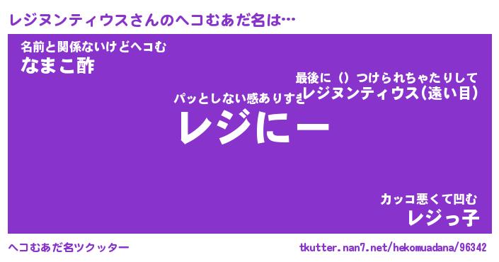 | 男性向けラノベタイトル風あだ名 | 『レジヌンティウスの憂鬱』 |